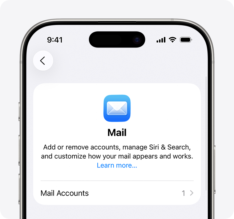 Go to Settings > Apps > Mail, then tap Mail Accounts.