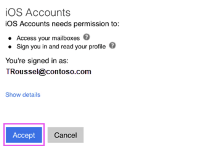 Enter your Office 365 email address, password, and a description (Optional) of your account. Tap Next.