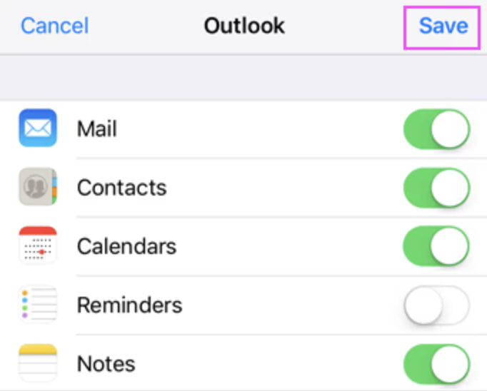 Choose the services you want to sync with your iOS device and tap Save. You're done!