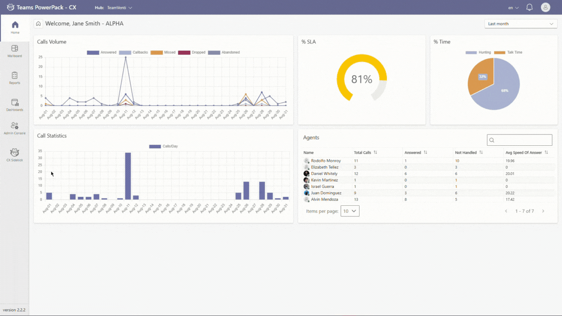Teams PowerPack - CX | Wallboard is a valuable informational tool designed for real-time monitoring and management of your Teams PowerPack - CX. Teams PowerPack - CX | Live Wallboard At-a-Glance Teams PowerPack - CX Statistics (Current Day Only): ...