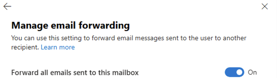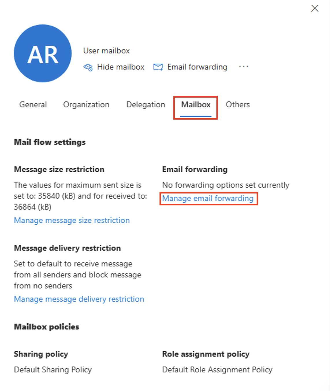 Under Mailbox > Email forwarding, click the Manage email forwarding link.